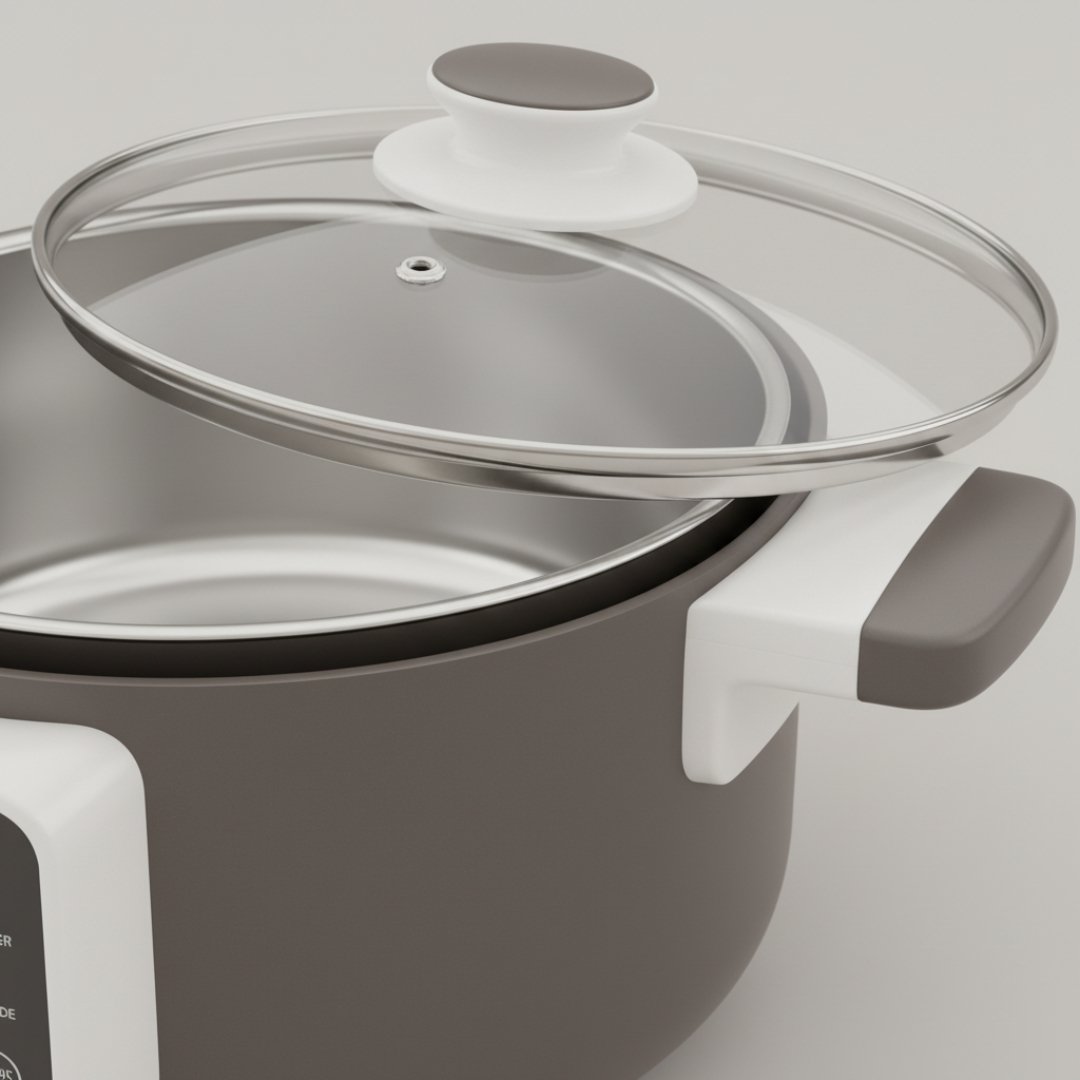 • Lid: Durable Tempered Glass lid for slow cooking