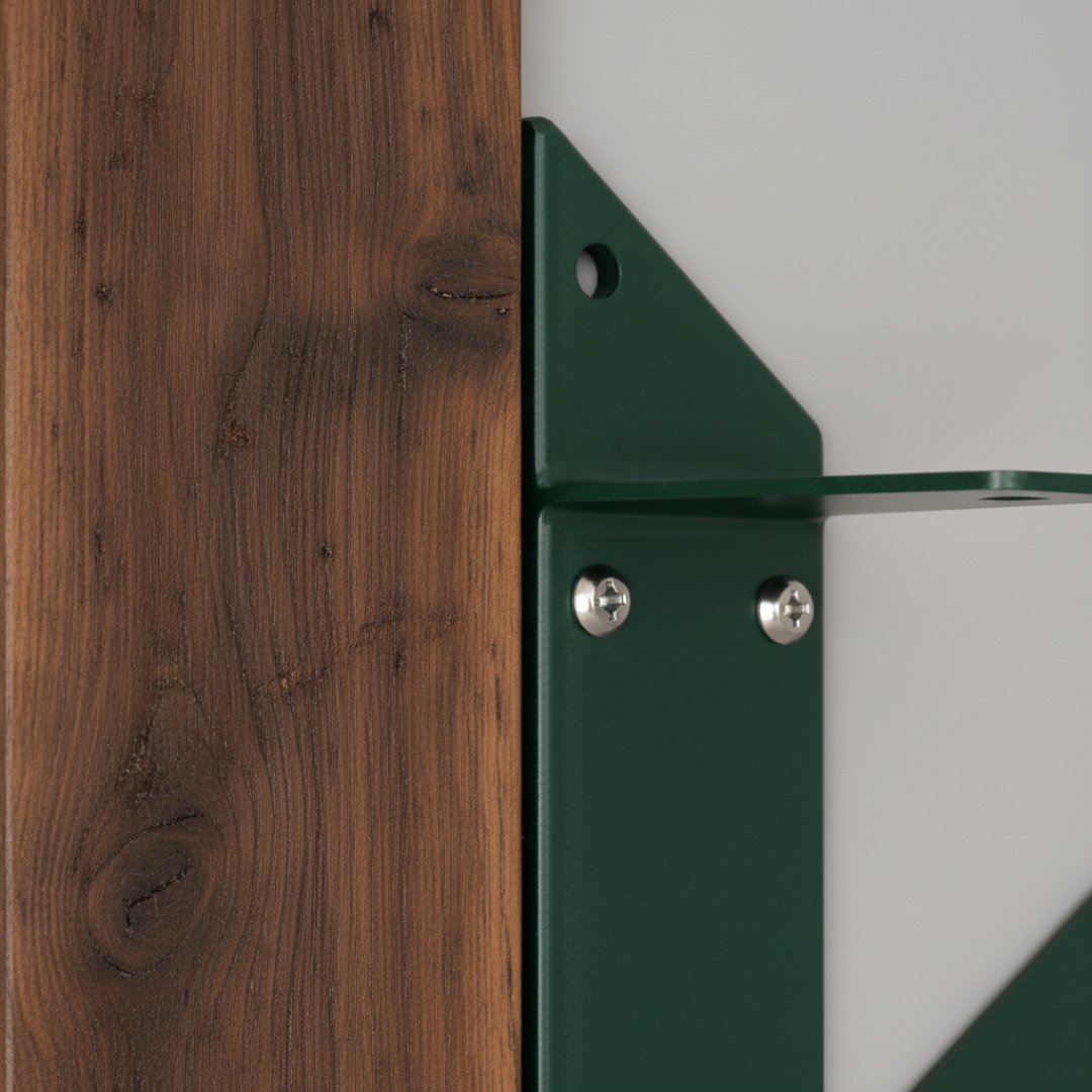 • Colour: Deep Umber (wood), Dark Forest Green (brackets)